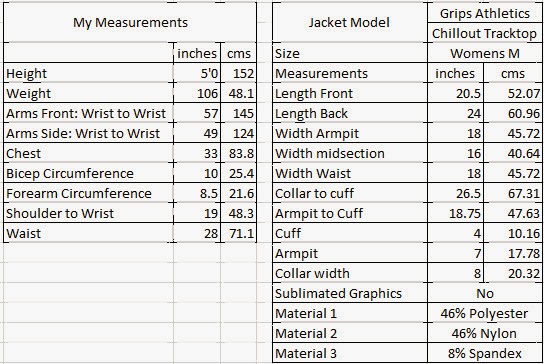The Chillout Tracktop by Grips Athletics has permanently replaced my Lululemon track top. Grips keeps hitting it out of the park with quality performance gear. It has breathable mesh under the arms and at the sides, a honey comb pattern, flat zipped pockets, an MP3 player pocket with a hole for the earphone wire, reflective accents… the list is endless. My review will be up on Breaking Muscle in the next few months. If the spring-like weather keeps up in Nova Scotia, it may be up sooner! Read on for more pics plus measurements!